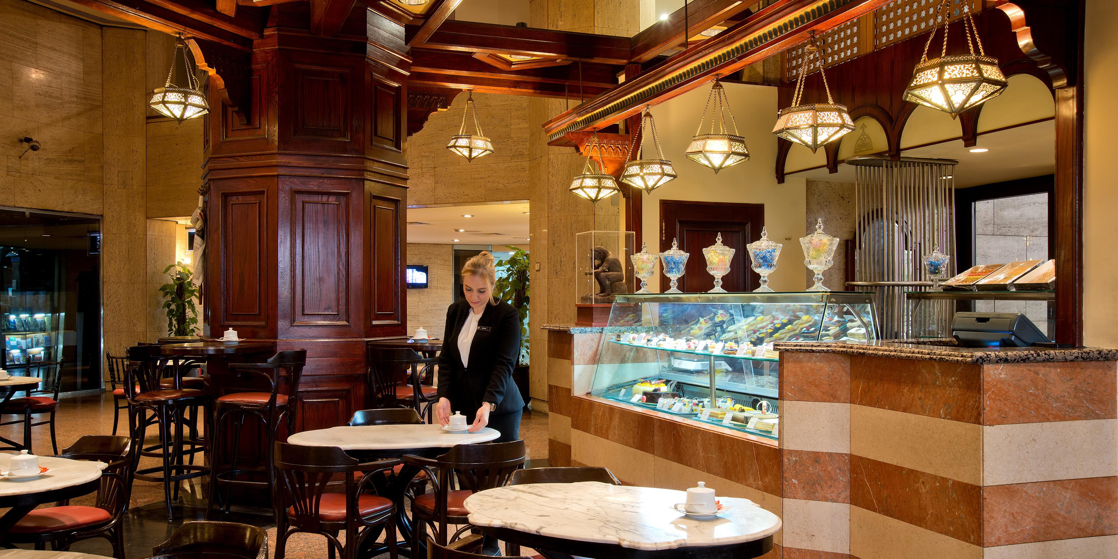 يشبه مطعم كافيه كورنيش متجرك المجاور الذي اعتدت عليه، لكن مع مسحة شرقية. يعمل المطعم المفتوح طوال الوقت على إشباع محبي الحلويات بالوجبات المغرية مثل إكلير Ivory Coast بالشيكولاتة، وتورتة Wimbledon بالفراولة، وموسية برجوندي بالعليق وكيكة شاي خفيفة بالزبيب الأسود. وتتوافر كذلك السندوتشات والسلطة والخبز والمثلجات ومجموعة مختارة من الشاي والقهوة طازجة التحضير والتي يمكن تناولها في المطعم أو اصطحابها معك.